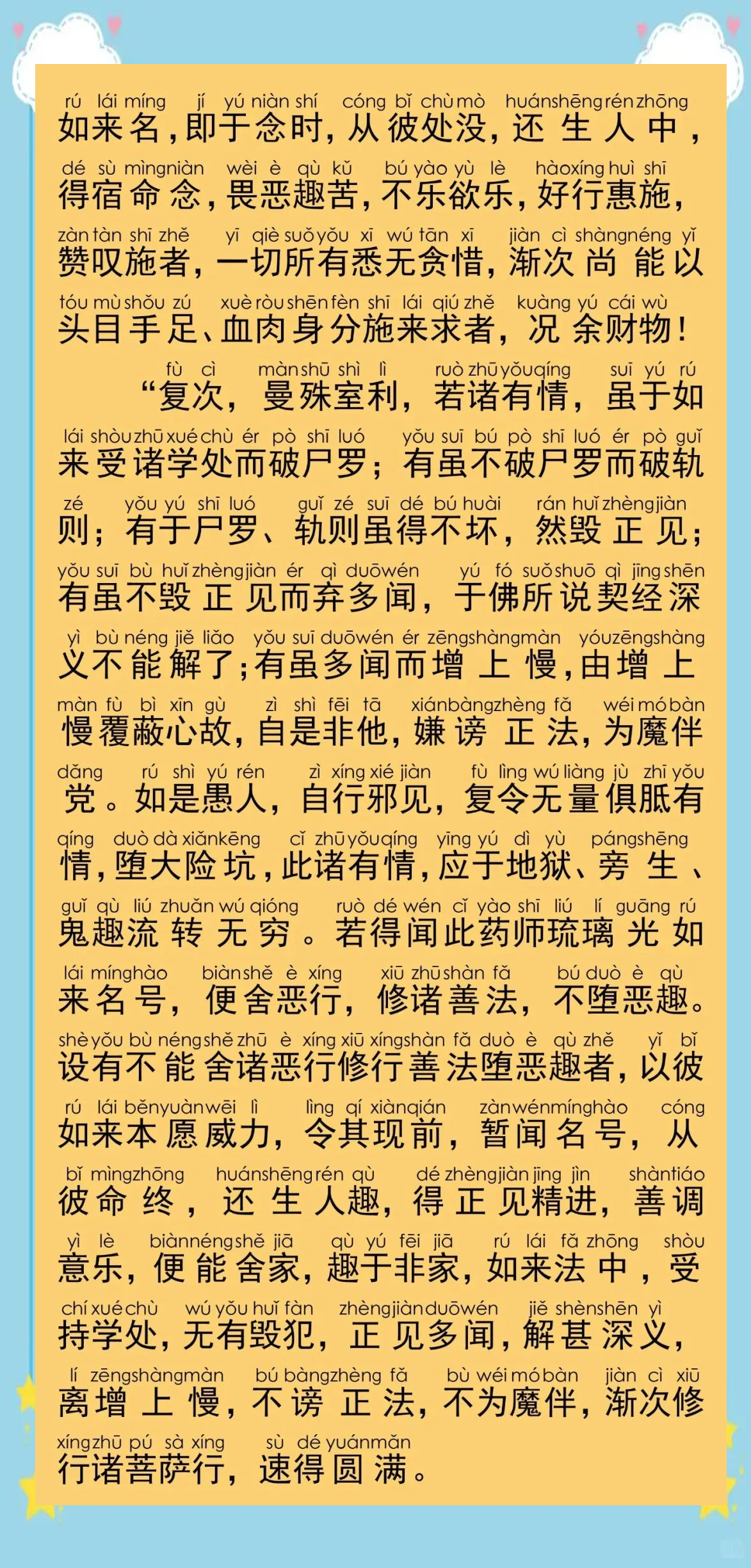 每日上午9时在弘法讲堂诵药师经一部,消灾坛超度坛婴灵坛普施上供,下午诵药师经一部,十方孤魂坛施放蒙山一堂。