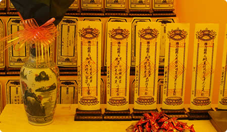 泊莲寺住持恒诚法师慈悲众生,诵法华经期间可免费立超度祈福牌位,牌位可以写2位往生或祈福者姓名,牌位置于西方接引殿或。