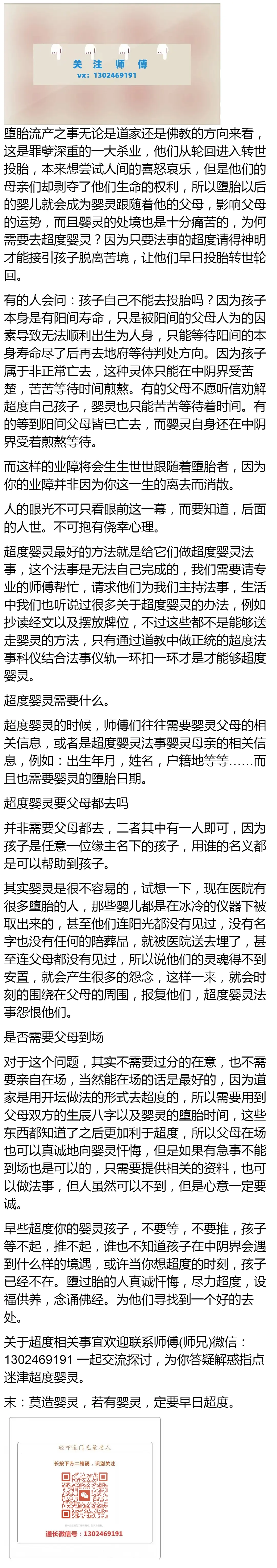 1、平时也有很多有缘众生问我,怎么给堕胎的婴灵超度,以做忏悔,今天大师做了总结人身难得生得为人难 佛门中有一句话,师;又该如何去超度婴灵呢? 堕胎有什么果报?一生育困难,因为堕胎之后,对女性身体伤害是非常大,严重的会造成不孕不育佛法来;多多超度超拔救助生命,为自己的堕胎婴灵多植福多做善事,上供下施,将善行善心回向给自己堕胎的孩子和所有可怜的被堕胎的孩子。